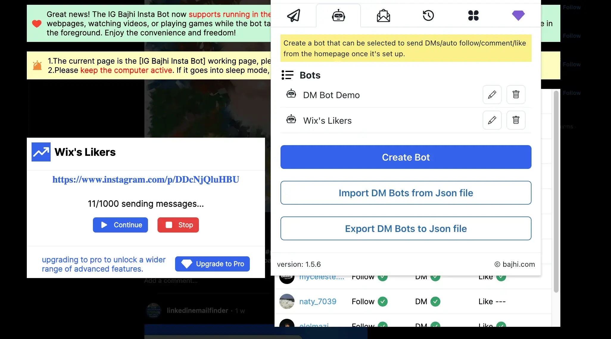 All-in-One Insta growth bot. Eva can auto Follow, Like, Comment, and send DMs to instagram users, helping you boost your visibility and attract more genuine followers.